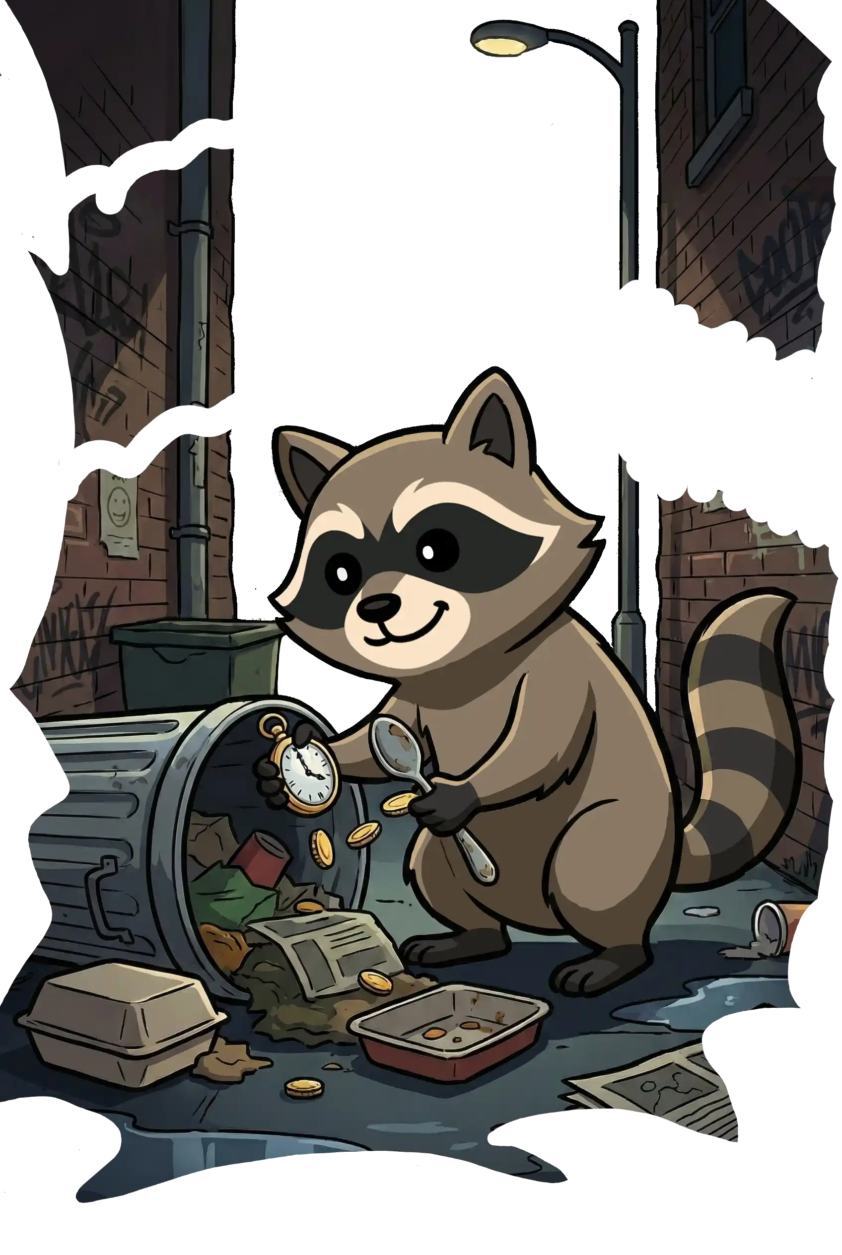 Racky is a clever, observant raccoon with a personality shaped by curiosity and sharp instincts. His character blends intelligence, determination, and a subtle rebellious streak that sets him apart from any other figure.